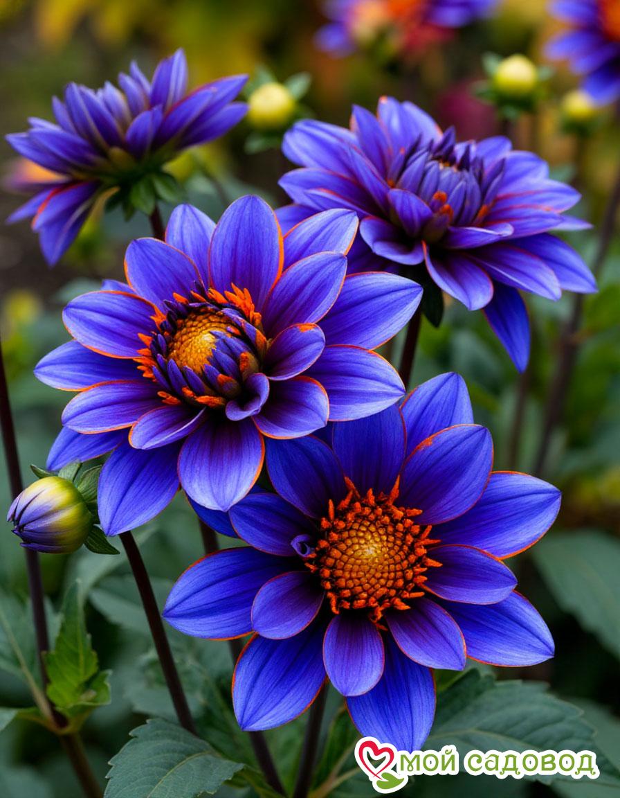 Георгин (Dahlia) — род многолетних травянистых клубневых растений семейства Астровые (Asteraceae) или Сложноцветные (Compositae). Георгины родом из горных районов Мексики и Центральной Америки были завезены в Европу в конце XVIII века и быстро завоевали популярность благодаря своей красоте и разнообразию форм и окрасок. На сегодняшний день существует более 42 видов георгинов и десятки тысяч сортов, различающихся по высоте куста, форме и размеру цветков, окраске и махровости. Внешний вид и строение: Георгин — это травянистое растение с клубневидными корнями, которые служат для запасания питательных веществ. Клубни георгинов имеют продолговатую или веретенообразную форму и могут быть разного размера, в зависимости от сорта. Стебли георгинов прямостоячие, полые, ветвистые, высотой от 30 см до 2,5 метров и более, в зависимости от сорта. Листья георгинов супротивные, перистые или дважды перистые, зубчатые по краю, обычно зелёные, но у некоторых сортов могут быть красноватыми или пурпурными. Цветки георгинов — это сложные соцветия, представляющие собой корзинки, состоящие из язычковых и трубчатых цветков. Язычковые цветки обычно крупнее и имеют разнообразную форму и окраску, а трубчатые цветки — мелкие и расположены в центре корзинки. У махровых сортов трубчатые цветки превращаются в язычковые, увеличивая махровость соцветия. Форма соцветий георгинов очень разнообразна: от простых ромашковидных до шаровидных, кактусовидных, помпонных и т.д. Диаметр соцветий варьируется от 5 до 30 см и более. Окраска соцветий также очень разнообразна и включает в себя практически все цвета и оттенки, кроме чистого синего и зелёного. Часто встречаются двухцветные и многоцветные сорта с контрастными полосками, пятнами, штрихами и другими узорами. Классификация георгинов: Существует несколько систем классификации георгинов, основанных на различных признаках. Наиболее распространенной является классификация по форме соцветий, согласно которой выделяют следующие основные группы: Простые (одноцветковые): соцветия с одним рядом язычковых цветков и открытой сердцевиной из трубчатых цветков. Анемоновидные (Anemone-flowered): соцветия с несколькими рядами язычковых цветков и выпуклой серединкой из удлинённых трубчатых цветков. Воротничковые (Collarette): соцветия с одним рядом крупных язычковых цветков и одним рядом более мелких язычковых цветков, образующих воротничок вокруг серединки из трубчатых цветков. Кувшинковые (Nymphaeaceae): соцветия с широкими, плоскими язычковыми цветками, расположенными горизонтально, напоминающими цветки кувшинок. Декоративные (Decorative): соцветия с многочисленными широкими язычковыми цветками, полностью закрывающими серединку. Шаровидные (Ball): соцветия шаровидной формы, с плотно свернутыми язычковыми цветками. Помпонные (Pompon): соцветия шаровидной формы, меньшего размера, чем шаровидные, с плотно прилегающими друг к другу язычковыми цветками. Кактусовые (Cactus): соцветия с узкими язычковыми цветками, свернутыми в трубочки, напоминающими иголки кактуса. Полукактусовые (Semi-cactus): соцветия с язычковыми цветками, свернутыми в трубочки не более чем наполовину. Смешанные (Miscellaneous): сорта, не относящиеся ни к одной из вышеперечисленных групп. Условия выращивания и уход: Георгины теплолюбивы и светолюбивы, поэтому для их выращивания необходимо выбирать солне